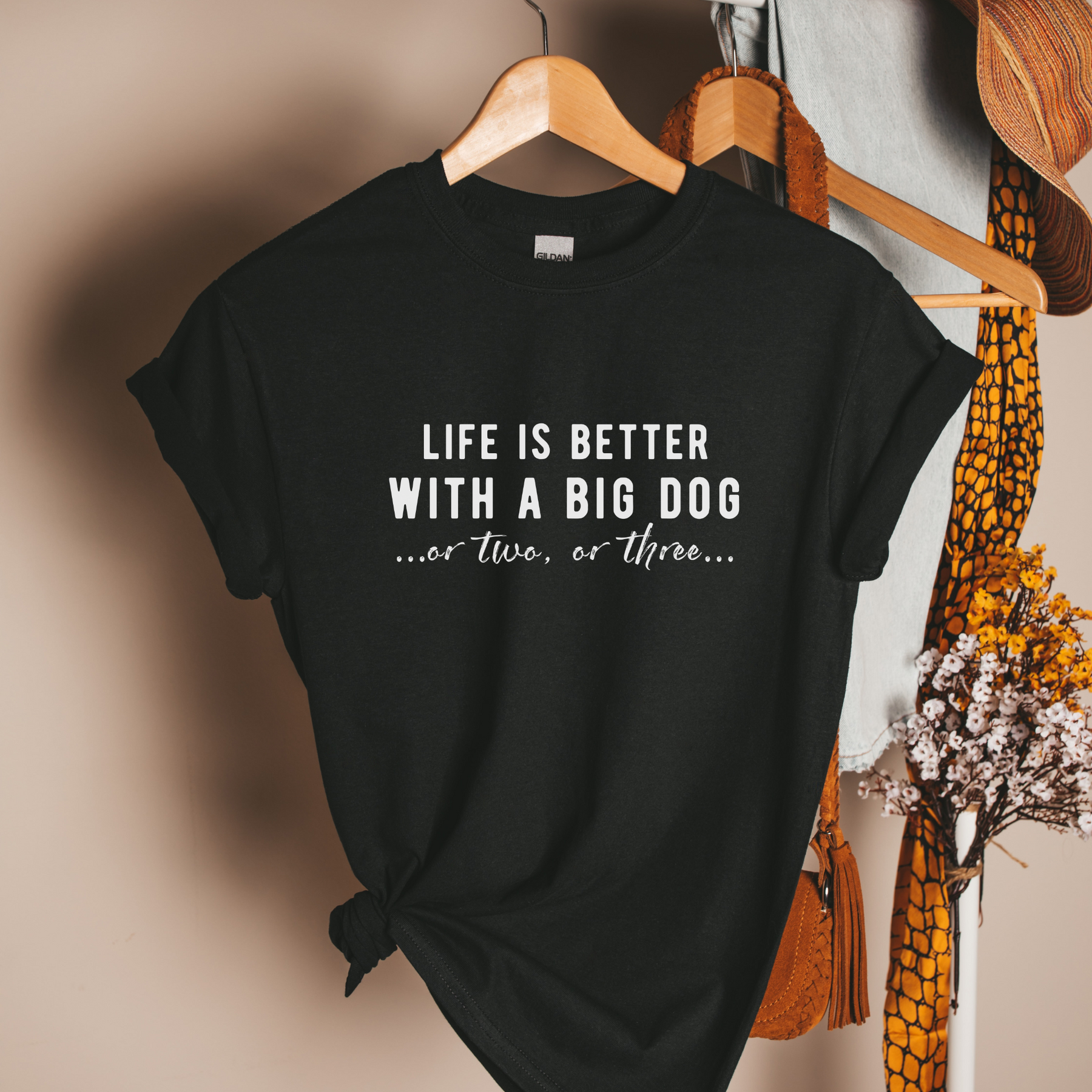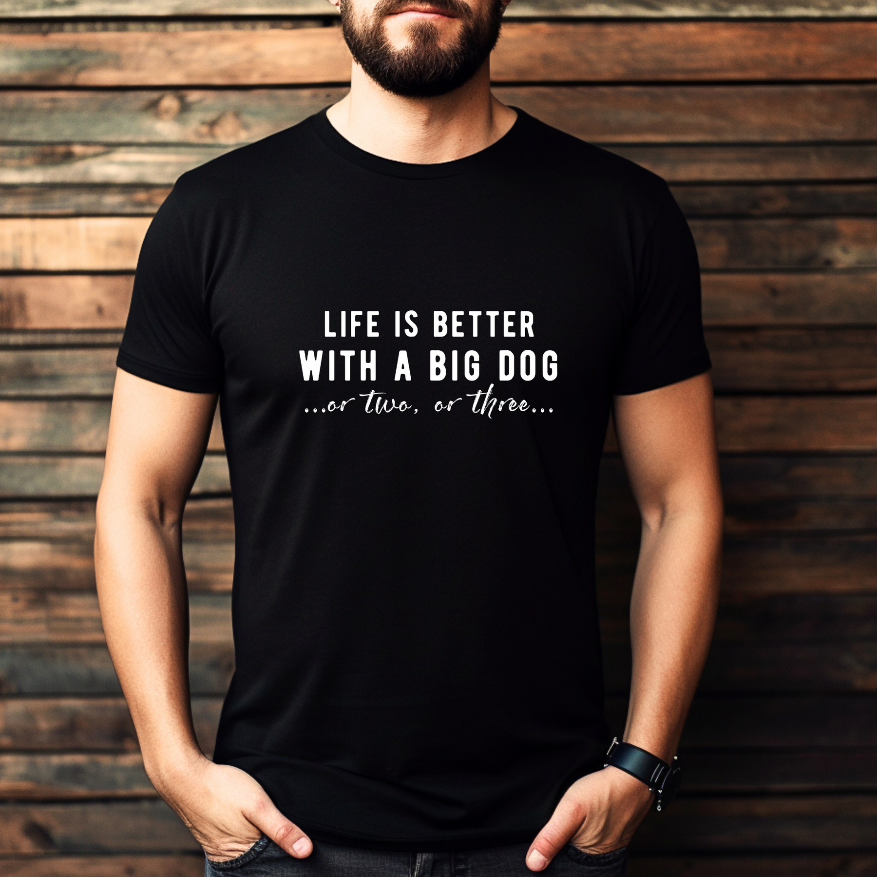 This tee is for the people who keep making room. Who say yes to another set of paws, another slobbery kiss, another reason the neighbours stare. Because life’s too short for just one big dog.